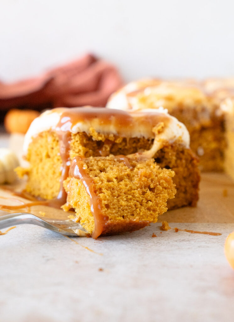 The Most Splendid Caramel Pumpkin Sheet Cake