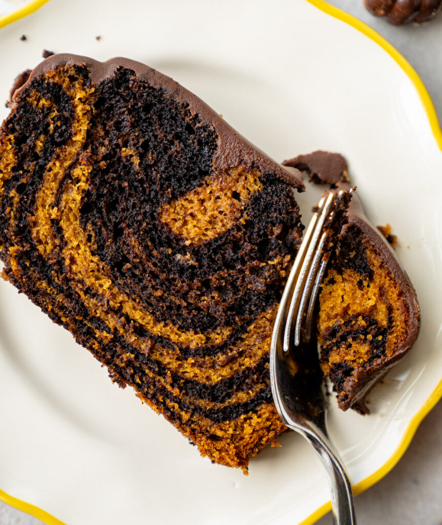 - Don't stress the swirl. The swirl effect happens naturally when you layer the pumpkin batter and chocolate batter. The more layers you do, the prettier it looks!